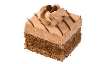 A carob-flavored wheat flour cake topped with carob frosting and carob decoration.