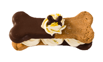 Delicious frosting sandwiched between two large wheat flour, peanut biscuits dipped in carob. Bigger version of Bichon Bar.