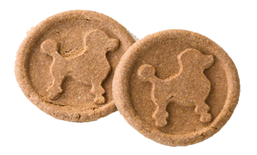5″ wheat flour, peanut biscuit dipped in carob. Personalized for FREE!